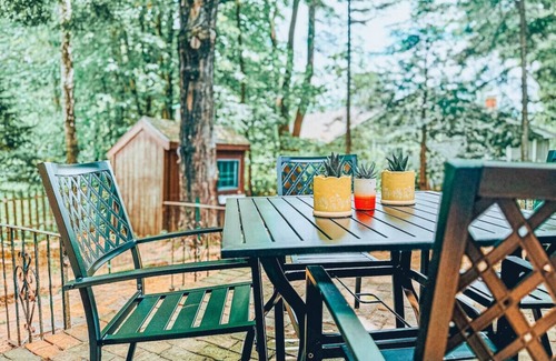 Perfectly charming both inside & out, this 1940s ski cabin enjoys a prime North Conway location. Built during the development of the ski area and thoughtfully renovated since then, this cabin with thought vintage ski decor, classic furnishings, & patterned textiles that exude character & warmth. Come home from a day on the slopes (a short walk away from Cranmore Mtn and under a mile from North Conway Village) or a fall drive on the Kancamagus Highway & relax in the warmth of the pellet stove.