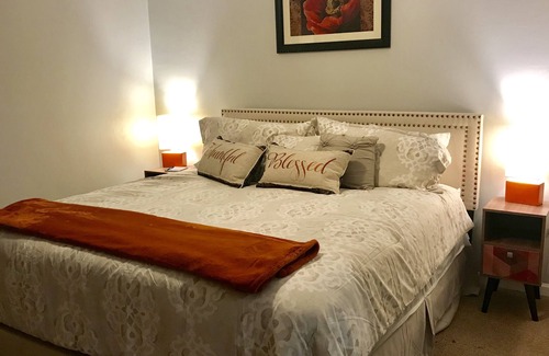 Spacious 2BR/2BA duplex provides a cabin like vibe with modern amenities. Location has easy access to I-10, each campus, airport and downtown. Walking distance to the city bus line. Fenced in backyard provides added privacy - guest can only access from interior. Home is secured and monitored by ADT with keyless front entry and front/rear exterior cameras. The access code for each guest is erased at checkout. Professionally cleaned and sanitized with each booking. Accommodates 6 - King Master Bedroom, Queen Bedroom 2, Queen sofa sleeper - mattress pad, pillow covers and extra linen for each.