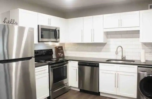 Enjoy our stylish, cozy and fun apartment in a gated community conveniently located in Atlanta’s new Upper Westside. Our flat comes equipped with a fully stocked kitchen, dining nook/office space, washer/dryer, full bathroom, two spacious bedrooms and a modern living room.