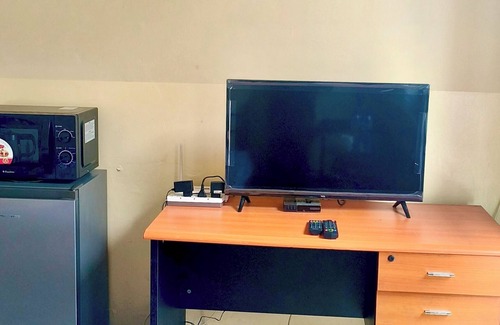The room is equipped with a microwave, electric kettle, fridge, and toaster, allowing you to prepare delicious meals and snacks. Enjoy the fresh air on your private balcony, where you can take in the sights and sounds of the city. While there is no parking available, you can easily explore Kinshasa on foot or by public transportation.