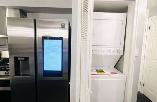 Our incredibly accessible washer/dryer combo is located in the hallway between the kitchen and the living room making laundry a breeze. Put a load and fold while watching TV and or cooking. We have laundry supplies available in the kitchen cabinets for guests to use.