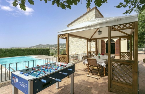 Quietly located beautiful large stone country house overlooking the small village of Guardea (1.5 km), Lake Alviano and the Tiber Valley - a true natural oasis! Its plot covers about 1.1 hectares with woods, olive and fruit tree groves and in the garden there is the beautiful pool and an outdoor area for your outdoor meals. All first floor bedrooms have high windows with no views. Domestic help on request (payment on spot). Distances: 20 km Orvieto, 40 km Todi, 45 km Viterbo, 70 km Tuscania, 80 km Perugia. Perugia's old town, perched on a hill, is a popular destination with its flair, narrow streets and numerous cultural monuments. In town, visit the Palazzo dei Priori with its extraordinary outdoor staircase and national gallery. In addition, Perugia is the site of the world-renowned jazz festival "Umbria Jazz" every year (early July) and a chocolate fair in October, a treat for your palate! Horseback riding enthusiasts will find one of the largest equestrian facilities in Italy near the vacation home.