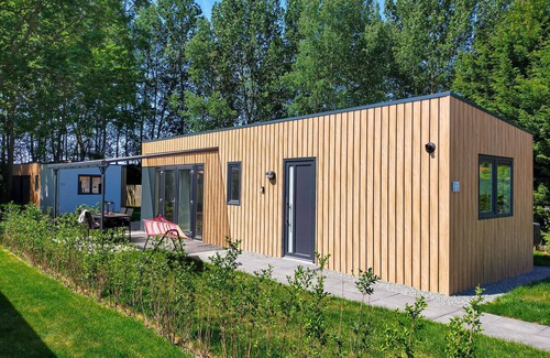 This is about a chalet placed on a pitch, and thus also offers you a common outdoor pool and lake. The large garden and outdoor area offer you and the young guests, as well as your pets free run, and enough space to enjoy themselves. In addition, there is a barbecue and a sun lounger at your disposal, which will thus allow you to relax even more. Also, take advantage of the garden furniture to eat freshly grilled food or your breakfast outdoors. Inside, a modern, bright ambience with stylish fixtures and good equipment awaits you.
