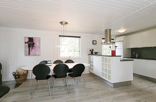 Modern and well furnished wooden holiday home in a popular recreational cottage area near the sandy beach and beautiful nature trails. This well-maintained vacation home is exceedingly bright and friendly, with a beautiful modern kitchen where cooking is a pleasure. Large dining and living room with comfortable furniture and free internet. Beautiful bathroom with underfloor heating. The house also has a wooden terrace with good garden furniture and barbecue, where you can enjoy the vacation and relax, overlooking the beautiful nature of the area. Very child friendly area, it is also not far to the coast if you are a windsurfer or fisherman.