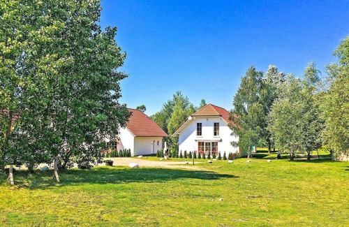 Verchen is a small idyllic resort on the northern shore of Lake Kummerow with a bathing beach, children's playground, boat and bicycle hire and good fishing opportunities. Jetty approx. 1 km. The district town of Demmin is approx. 14 km away. In the village there are also various places to eat, a fish restaurant and a small country market. Lake Kummerow is the eighth largest lake in Germany. Its biodiversity and partly unspoilt nature make it an Eldorado for anglers, water hikers and nature holidaymakers seeking peace and quiet. The surrounding area has remained rural and has retained its unspoilt character. Gentle tourism is practised here, not mass tourism. The holiday complex with 14 holiday homes is located on a 12,000 square metre plot directly on Lake Kummerow, separated from the beach and playground only by the lakeside road. Quiet location on the edge of the village."