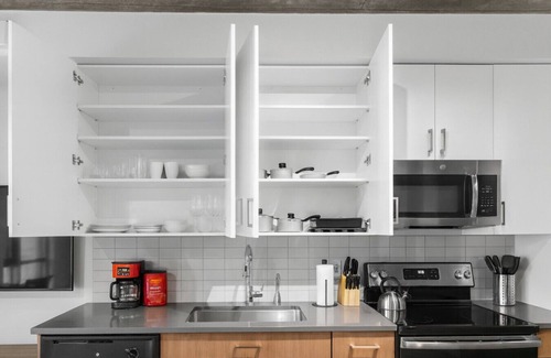 🍳 Kitchen: Cook with ease in a modern kitchen equipped with stainless appliances, ample counter space, cookware, and a coffee maker for your morning brew. Perfect for everything from quick breakfasts to full dinners.