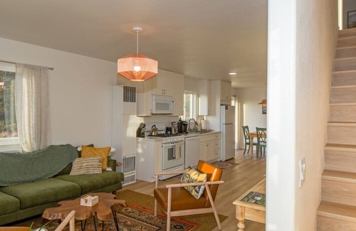 Unit 1: 2-story 1100 sq ft townhome with open space on the 1st floor that includes sitting/TV, dining area, half bath and a well-equipped kitchen with brand new appliances. Staircase with handrail leads you to the 2nd floor with 2 bedrooms (bedroom 1 with king, bedroom 2 with queen and twin beds). There is a full bathroom with a shower on a second floor. Roku TV in each bedroom and a living area to keep up with your favorite TV series and movies.