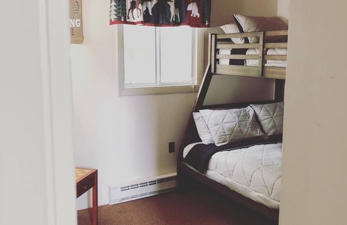 Cozy and Adorable home located in a private cove on Maine's Trophy Bass Lake. 3 Bedroom, one and a half baths, includes a kitchen with all of your cooking needs, living room with fireplace and a huge wrap around deck with view. Living room and loft include pull out sofa for more guests. The newly renovated basement has a play room that has a Smart TV and a futon that can easily become an extra sleeping area. The unfinished side of the basement includes a washer and dyer, life jackets and corn hole game for guest use. Outside enjoy the lake with our Kayaks and paddle boat or sit back and relax next to the campfire with a cocktail. A beach area and boat dock are included and the public boat ramp is close by. Home includes Cable TV and Wifi.