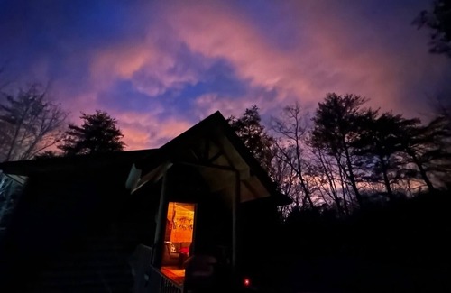 Leave all your stress and worries behind at this private and tranquil 2 story log cabin getaway... from the change of seasons, beautiful mountain views for days, privacy on acreage, a huge yard for your animals & children, the waterfall with observation deck, a stream to hike to and splash around in or look for salamanders & crawdads, over 2 acres of hiking trails, a giant slate stone fire-pit begging for s'mores & hotdogs, a big upper deck to watch the night sky to get lost in and the nonstop abundance of animal wildlife!
