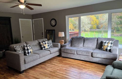 Relax with the whole family at this peaceful place to stay just minutes from Lost Creek lake. This property sits on just over 3 acres and has the capability of sleeping up to 34 people by renting the upper and lower bunkrooms.