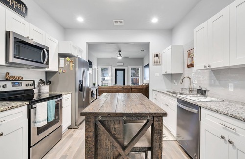 Checkout this 4-bedroom home with large 5-person hot tub and newly installed pool! House has tons of space, a modern touch and amenities to entertain family and friends! The best part is the central location in San Antonio! You are 3 minutes from the Alamo Dome, 5 minutes to the River Walk, 8 minutes from Frost Bank Center, and 10 minutes to Pearl Brewery! This home has fast Wi-Fi with apple TVs in every room to steam Netflix, Hulu, Spectrum and many other great streaming services! Arcade games, Darts, Connect 4, and Corn hole also available! Very quiet neighborhood with restaurants, shopping malls, and convenient stores minutes away as well!