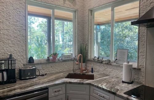If you are looking for a secluded vacation rental, this is the place for you! Bring your own boat or hire one of our local charters and enjoy a summer vacation on the water! After a beautiful day on the water, you will have a secluded place to unwind and enjoy your time with family and friends. This cozy beach cottage is newly built in 2020. The upper deck is the main living area with a covered wrap around porch. The downstairs area is fully screened in, and has a full bathroom complete with a keg urinal, toilet, shower and vanity, washer & dryer plus a refreshing outdoor shower. Enjoy some of the most beautiful sunsets from the upper level back porch or a short walk to Adams beach. It is just 1/4 mile away from an airboat/ kayak ramp and only 3 miles away from a public boat ramp and Keaton Beach. It is located on a secluded dead end road with no nearby neighbors! The Keaton Beach area is known to be one of the best places on the beautiful Gulf coast for scalloping, red fish, trout and red snapper fishing. If you’re an outdoor enthusiast, this area is a hidden gem that does not disappoint! It is a low key area with all locally owned stores and restaurants. We provide all household essentials, bed linens, and towels. The kitchen is equipped with an induction cook top, and a tabletop air fryer for baking, etc. Please note there is no microwave! There is a refrigerator, gas range, and gas grill downstairs. Propane is provided. So pack your bags and come enjoy a relaxing visit to the beautiful Gulf coast of Florida!
