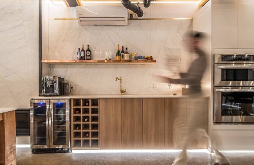 Step into this executive suite, ground level of our home, featuring 9'-3" ceilings. This space offers two bedrooms, two full baths with a walk-in shower and a Jacuzzi tub. Enjoy a full kitchen, in-floor heating, a gas cooktop, and a cozy gas fireplace and EV charger. An expansive living and dining area awaits, alongside an ensuite bathroom, in-unit laundry, indirect lighting, and blinds. You'll have access to a backyard sauna and hot tub, plus a rooftop patio, free on-site and street parking and so much more.
