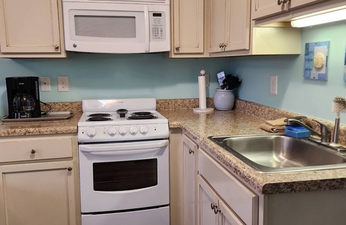 Come enjoy our studio condo haven by the sea! Well-appointed kitchen and a full bath. No stairs in! Literally steps away from the beach/ocean and the complex also boasts a nice pool as another great amenity.