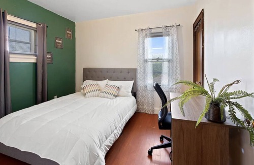 This is an UPPER level apartment of a duplex - the lower unit is currently occupied. This unit comes with street parking, high speed internet, 1 full bathroom, a full kitchen with a coffee station and 2 bedrooms that each have a queen bed in them. A workspace is provided as well!