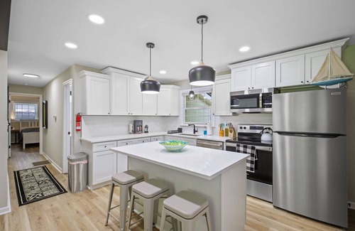 This 3 bedroom offers a fully stocked kitchen, ready for cooking/ baking. There is a great workspace in the master, great for travel trips. Attached to the master is a private full bath with shower. Second Room has a queen, and the third bedroom has two twins.