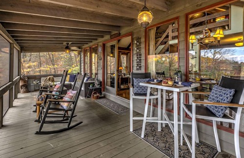 Outdoor - 1st covered screened in porch, hot tub seats 4, gas grill, outdoor dining seats 4; 2nd covered screened in porch, L-shaped seating area, 2 rocking chairs, outdoor dining table seats 2; sun deck, 2 chaise lounges great for star gazing; hiking outside your door where you can walk the circular driveway and the mountain road with incredible views plus you're 2 miles from Aska Road Hiking Trails and 4 miles to Fall Branch Falls off Aska Road