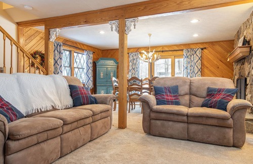 Das Marchenhaus or "the fairytale house" is a fabulous germanic/swiss style chalet. This charming duplex is spacious, free flowing, decorated tastefully, and offers tons of comfort. Das Marchenhaus offers 3 bedrooms and 2.5 baths with the delightfully large loft on the third level. Located conveniently off of Timberline Road, you can walk or drive to Timberline Mountain by Perfect North. This lovely ski chalet with large stone fireplace is tucked inside a wooded property only minutes from the surrounding attractions including Canaan Valley Resort and Conference Center, Blackwater Falls State Park, Whitegrass, Dolly Sods Wilderness and trail access in several locations nearby if you want to hike or bike directly out your door. Das Marchenhaus is just a short drive to the quaint and quirky towns of Davis and Thomas for your shopping and gallery enjoyment. In summer months: relax on a wooded back deck. An easy walk through the woods and parking lot will land you at the base of the Timberline Mountain ski slopes and trails. Sleeps 8. Easy to Access all Winter long.