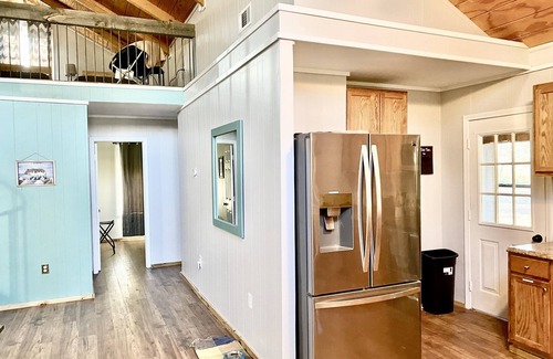 Newly renovated - Some exterior pictures are from February - so expect beautiful green grass and trees in the spring. The master bedroom has a king bed and a joining full bath. Second bedroom has a queen bed and the loft has 3 single beds. All brand new memory foam mattresses. The 2nd bathroom next to bedroom #2 has a shower only while the master bath has a tub/shower. The loft is accessed by a spiral staircase - a child safety gate is available but please be aware that children should be supervised when using the stairs.
