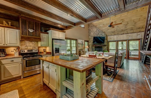 This 2-bedroom, 2-half-bathroom cabin in Mineral Bluff, GA, is the ideal destination for those seeking a peaceful and luxurious mountain retreat. With its inviting interiors, outdoor amenities, and proximity to the creek, your stay here promises to be a memorable and rejuvenating experience.