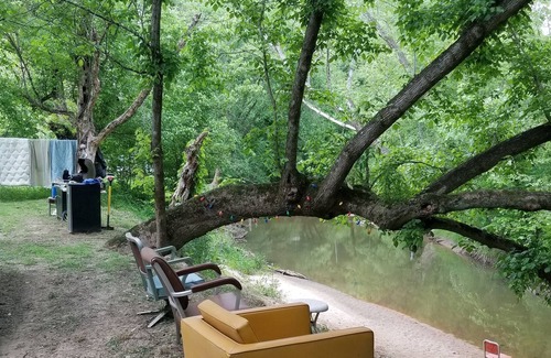 Camp on the creek, fish for big catfish, kayak, ride ATV's and hike.