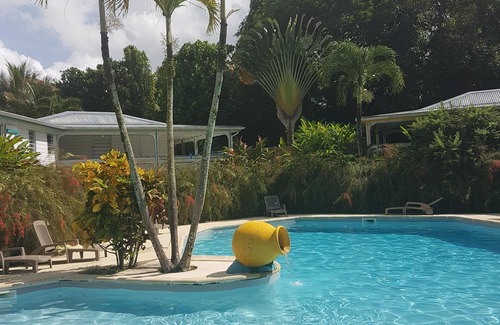 Charming bungalow, Creole style in a tourist complex with large pool, tropical garden and restaurant with creole specialties.
