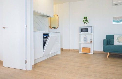 The apartment is on the seventh floor of a building with an elevator and has a 25 m² terrace with views of the garden and the sea, perfect for having breakfast or lunch while enjoying the landscape. The decoration is modern and functional, with an integrated space that combines living-dining room, open-plan kitchen and two bright bedrooms with double beds. It has air conditioning in the living room, heat pump heating, two Smart TV televisions and WIFI internet connection so that you lack nothing.