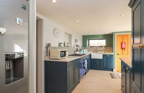 Amenities: Gas central heating with underfloor heating downstairs. Oven, gas hob, Air Fryer, Coffee Machine, microwave, fridge, washing machine, dishwasher. WiFi, Alexa, books. Fuel, power, and starter pack for woodburning stove inc. in rent. Bed linen and towels inc. in rent. Private, off-road parking for 2 cars. Property has 2 bikes for us. Rear garden with lawn, patio, and furniture. BBQ. Front garden. Sorry, no pets and no smoking. Shop 0.5 miles, pub 1.8 miles, river 0.6 miles. Property is 2 minutes walk from a nearby park and playing fields. Please note: