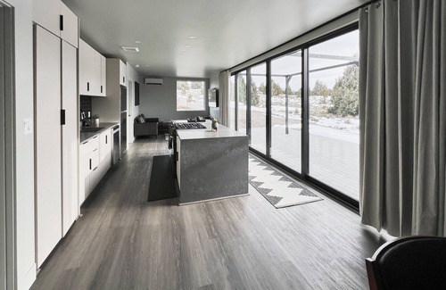 This custom container home is located near Zion National Park, Bryce Canyon, Brian Head, Navajo Lake, and the quaint towns of Kanab and Panguitch. Delight in the peace and quite at this off-grid home that sleeps 6 guests very comfortably with a master bedroom and two large guest rooms, each with an en suite bathroom. Enjoy quick access to local immunities hiking, fishing, mountain biking, skiing/snowboarding or just relax on our spacious deck and take in the sunset.