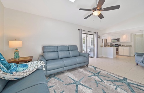 Enjoy the beautiful Florida weather in this 3 bed / 2 bath pool home with activities for the whole family, including a pool on the patio, cornhole set, fire pit lounge area, and a custom outdoor bar. Dog friendly with applicable deposit! Enclosed lanai & separate, spacious patio beyond. Check-in is a breeze with our convenient keyless entry, which allows direct access to the home upon arrival! All home info is sent to you before your vacation begins to ensure you have important info at the ready.