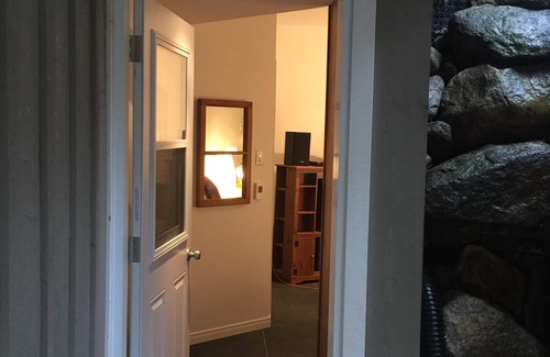 A large basement bachelor unit with 12 foot ceilings available in the Old Village of Tremblant. The unit is bright and airy with a private entrance and one parking spot. You are walking distance to a number of pubs and restaurants and a grocery store. A short 4km drive to the chair lifts at Tremblant. The unit has everything you need for a weekend or mid week getaway. The unit was renovated in 2013 and has a full bathroom, with a kitchen and a flat screen tv with cable and wifi. The unit is heated throughout with radiant in floor heating.