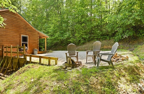The cabin's downstairs level has a full sized slate pool table with futon that sleeps two, electric fireplace, Smart Internet TV, chairs, stereo, mini-fridge, games, and books to enjoy. The downstairs bedroom has king size pillow top bed. The bathroom on this level has a large shower and laundry facilities. A private back deck with table and seating serves the downstairs level.