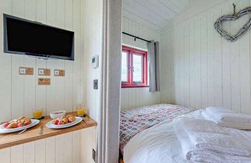 Step inside your exquisitely appointed shepherd’s hut, designed for maximum comfort and relaxation. Sleep blissfully on a king-size bed with a memory foam mattress, ensuring you wake up rejuvenated for more adventures. The hut's interior features a cosy dining area and a snug seating nook with a Smart TV and complimentary Netflix, perfect for unwinding after a day of sightseeing. The underfloor heating guarantees a warm and inviting atmosphere no matter the season. The modern kitchen facilities allow you to prepare delicious meals with ease. Whether you're whipping up a quick breakfast or a leisurely dinner, everything you need is readily available. The stylish en-suite shower room boasts contemporary fittings and high-end finishes, with complimentary toiletries adding a touch of luxury to your stay.