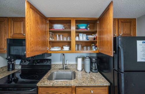 This unit boasts a comfortable king bed and a sleeper loveseat, providing room for you and your loved ones. With a fully equipped kitchenette, you can easily whip up a quick meal or enjoy your morning coffee on the balcony while taking in the sights of the beach.
