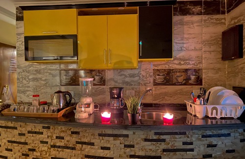 The apartment has a wide view of the pyramids and the grand museum and the building has a coffee shop & super market in the ground floor where you can buy all your food staff, the area is very quiet area with friendly neighborhood