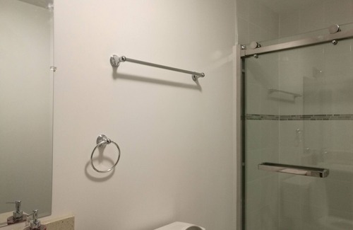 En-suite bathroom shower only with 36" granite top vanity and auomation control humidity smart bathroom fan.