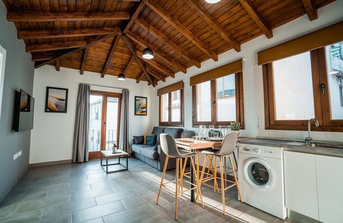 A 17th century house located at the heart of Albaycín with carved wooden ceilings and gorgeous views of the Alhambra. Many original features have been preserved in this charming accommodation, including a column made of stone from Sierra Elvira in the typical Andalusian patio and a beautiful upper gallery with a wooden banister and wooden beams.