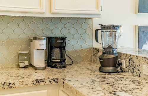 - Remodeled kitchen with stainless steel appliances and granite countertops, Keurig and drip coffee makers, and Nutri-bullet blender