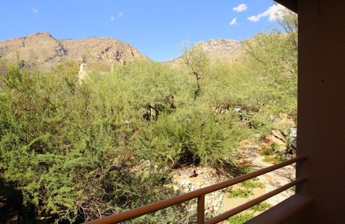 Absolutely fantastic 2bedroom / 2 bath second floor condo in Ventana Canyon! This beautiful unit sleeps 4 with 1 luxury king bed & 1 luxury queen bed. The unit has a fully equipped kitchen and all linnens are supplied. The family room features wonderful mountain views framed by the large picture window. Or if you prefer enjoy the views from the covered patio - the perfect spot for a morning cup of coffee or an evening glass of wine. The light bright open floor plan make this condo feel spacious and comfortable. And the lush desert setting is second to none.