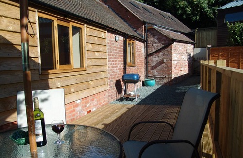 1850s brick and tiled barn conversion renovated to a high standard with decked area overlooking Pontesbury village. A variety of walks from the accommodation. It has off road parking for 2 cars. It sleeps a maximum of four,Two bedrooms -one double- one with two single beds. shower room with toilet and basin.Well equipped kitchen with dining area ,cooker, fridge freezer ,microwave,washing machine etc.Lounge with views and tv area and decking with bbq and table and chairs..free wifi .our changeover day is friday for 7 day bookings