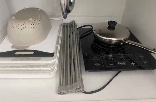 • Fully-equipped, self contained studio, with cooking basics, microwave, airfrier/oven, induction cooktop, coffee machine, electric water boiler, private patio garden and BBQ.