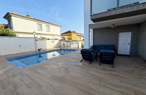Detached villa is located in Tomares. Detached villa provides accommodation, featuring Wellness Facilities, Fireplace/Heating, Guest Services, among other amenities. This Ski Chalet features Wellness Facilities, Fireplace/Heating, Guest Services, to make your stay a comfortable one.
