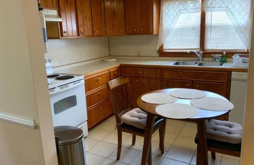This cozy rambler is a great place for a family vacation. The space has a sit in kitchen fully stocked with appliances, cooking supplies, and utensils. Adjacent to the kitchen is an open living and dining space. There is also a full living space in the front of the house with a separate tv and 2 couches. There are 3 spacious bedrooms. The master bedroom includes a full bathroom. There is also a full bathroom in the hallway. More than enough space to relax and enjoy.