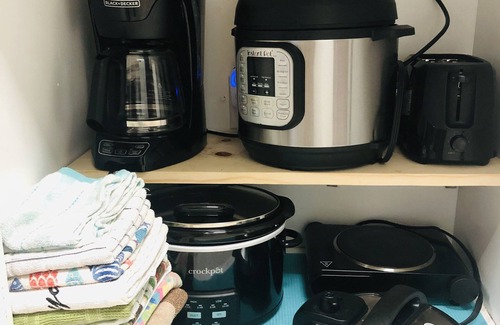 The spacious unit includes two bedrooms, a bathroom, a living room, and a kitchen. One bedroom features a double bed, while the other has a queen bed, both equipped with super comfortable, high-quality mattresses. The kitchen is fully equipped for cooking, although it does utilize a hot plate, a microwave, and a variety of cooking gadgets instead of a traditional range or oven.