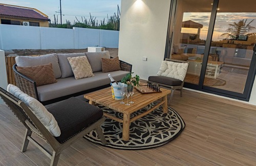 Experience the ultimate Aruba getaway at our luxurious 2-bedroom, 2-bathroom villa. The beautifully designed interior offers a perfect balance of style and comfort, with a fully equipped kitchen, spacious living areas, and tastefully decorated bedrooms. Step outside to your private patio and pool, where you can relax in the sun, enjoy a refreshing swim, or dine under the stars. Located just a short drive from Aruba’s top beaches, restaurants, and natural attractions.