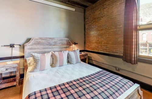 Step away from the ordinary at this unique hotel suite at the Benson Lodge in historic Silverton, Colorado. Featuring high ceilings, warm wood accents, and gorgeous exposed brick, you and your guests will have all the comforts of home while visiting the western San Juan Mountains. Additional amenities include a kitchenette for brewing up your morning coffee and storing or reheating yesterday's leftovers, complimentary internet access, and access to shared laundry facilities, a business center, and on-site conference rooms.