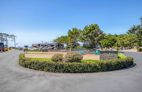 Stay a few steps away from the beach at the beautiful Pacific Shore Motorcoach Resort near Newport, Oregon.