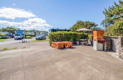 Stay a few steps away from the beach at the beautiful Pacific Shore Motorcoach Resort near Newport, Oregon.