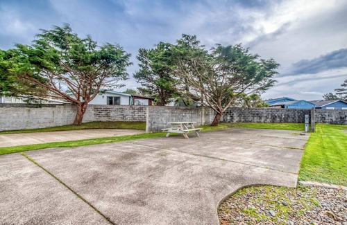 Stay a few steps away from the beach at the beautiful Pacific Shore Motorcoach Resort near Newport, Oregon.