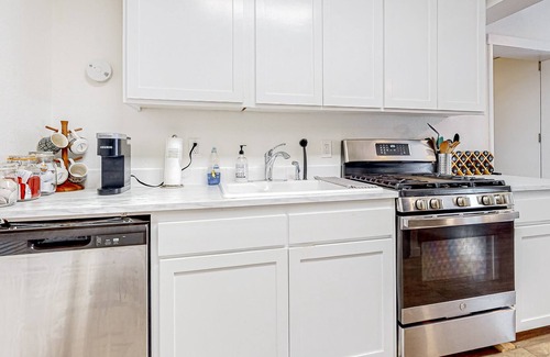 The home itself is fully furnished for complete modern comfort. The full kitchen makes it easy to plan and prepare home-cooked meals. A private washer/dryer is equipped for total household convenience. The sunny living area features a smart TV and a dedicated desk for casual downtime entertainment and remote working. Free WiFi is equipped throughout the home.